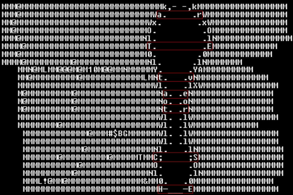 The community was quick to discover that when replying to the "Computer Repair Request" email from Jim's Electronics with "When?" to the company's statement of "Check back with us soon!" that we would receive a bounce back email from Jim's Electronics with an image of a spoon (likely referencing the meme of "When? Spoon.") made of random characters, to which the community realized that if you took the letters comprising the sides that did not repeat on both sides, it would spell ATTACH REVERSE (as noted on the photo below).