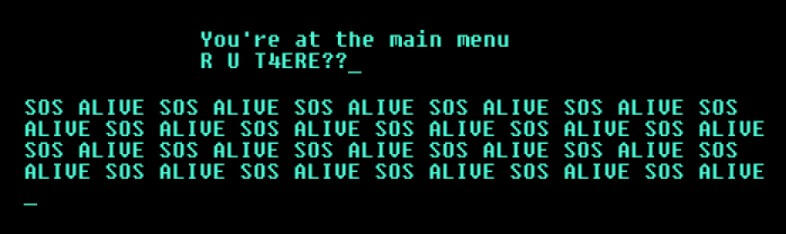 After a day of speculation on where the new main menu interaction would lead and testing various entries, a new lead was discovered that opened the doors to a conversation. This conversation would be between the player and a teen who seemed to be trapped in the Beyond trying to contact us for help while being chased by some entity.Using the phrase "SOS ALIVE" to respond to an error message email we had previously received, the "ERROR 1x534f53534f5354f53" entry, we received our first reply:Below is the full conversation and paths to said interaction. (Note, the some emails have multiple conversation paths. Each chain will be separated by line breaks):