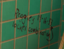 NEED A PASSWORD? THE WRITING IS ON THE WALLS.Immediately the community was reminded of a clue that linked to a speculated teen, Reggie, whose locker combination was written on a bathroom stall's wall at Pine Bluff High and found that this locker combo "19-16-33" was the first input needed on the error email to unlock the next step.